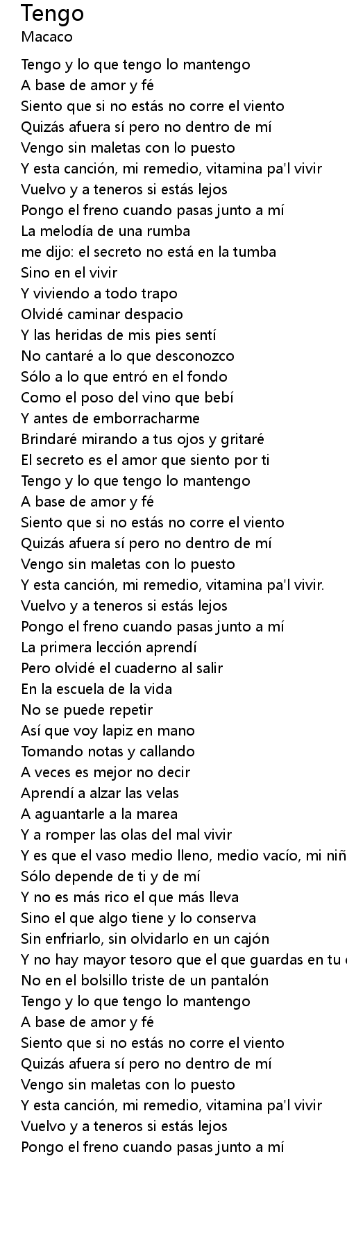 | Tengo y lo que tengo lo mantengo | |
