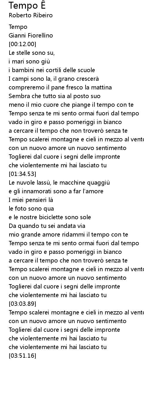 | [00:55.03] | Tempo senza te mi sento ormai fuori dal tempo |