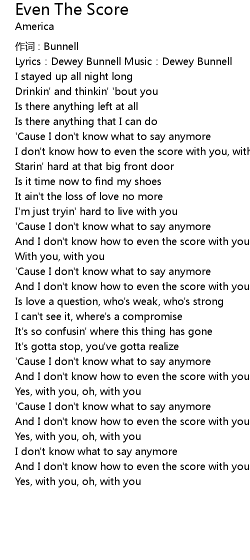 | And I don' t know how to even the score with you, with you | |