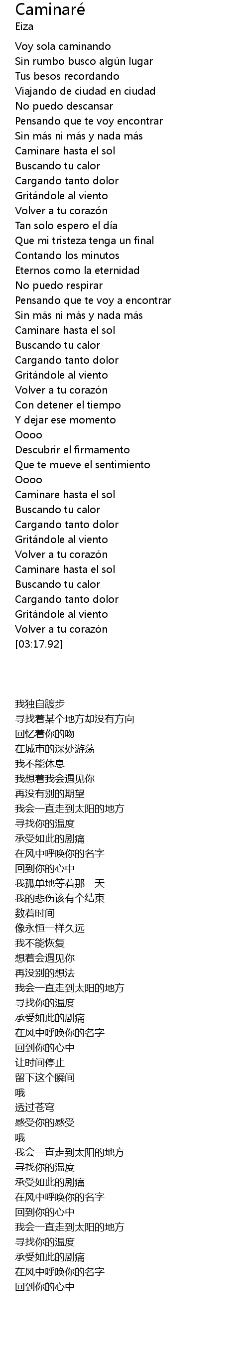 | [02:33.59] | Caminare hasta el sol |