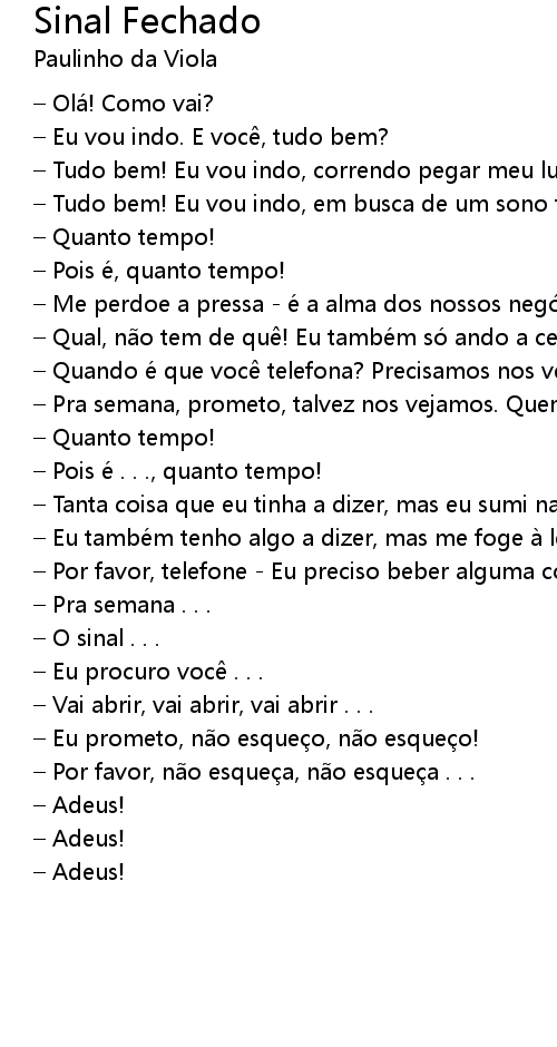 | 歌曲 | Sinal Fechado |