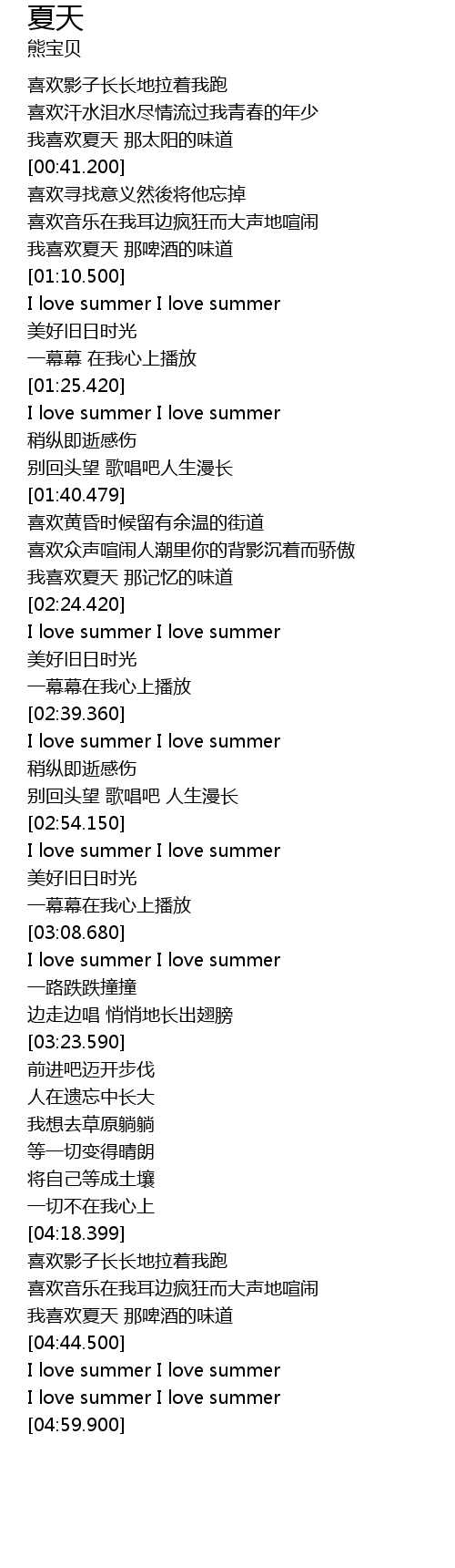 | [04:45.300] | I love summer I love summer |