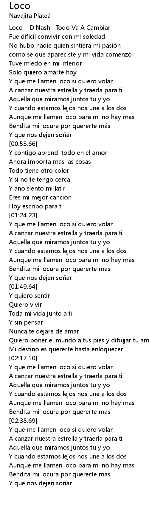 | [00:00.00] | Loco --D'Nash--Todo Va A Cambiar |
