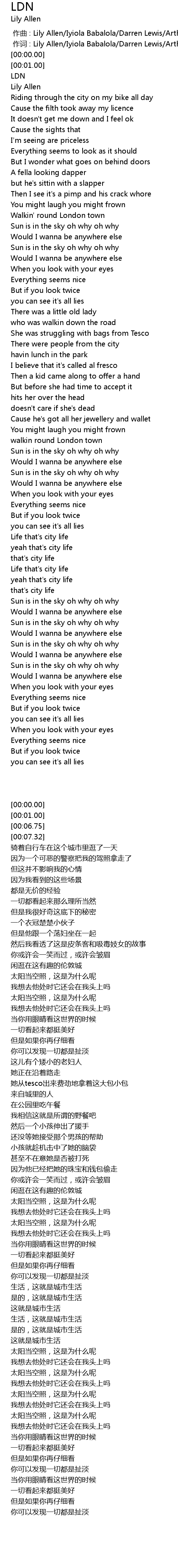 | [00:00.00] | zuò cí : Lily Allen Iyiola Babalola Darren Lewis Arthur " Duke" Reid |