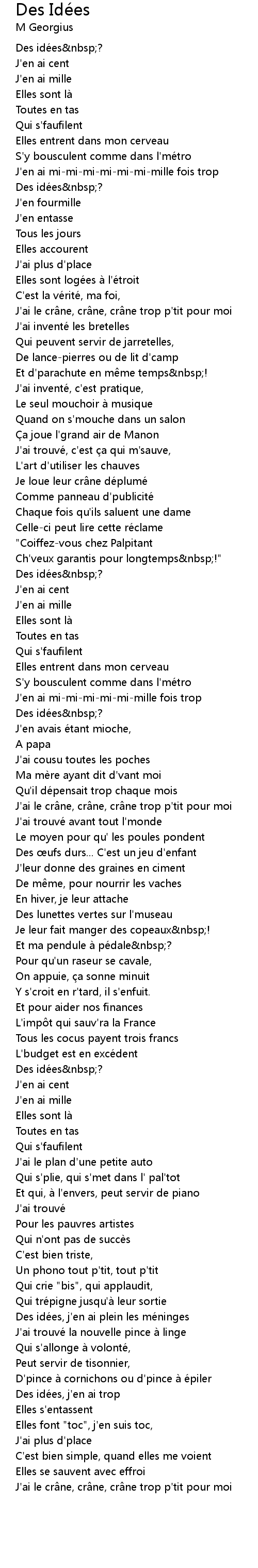 | J' ai le cr ne, cr ne, cr ne trop p' tit pour moi | |