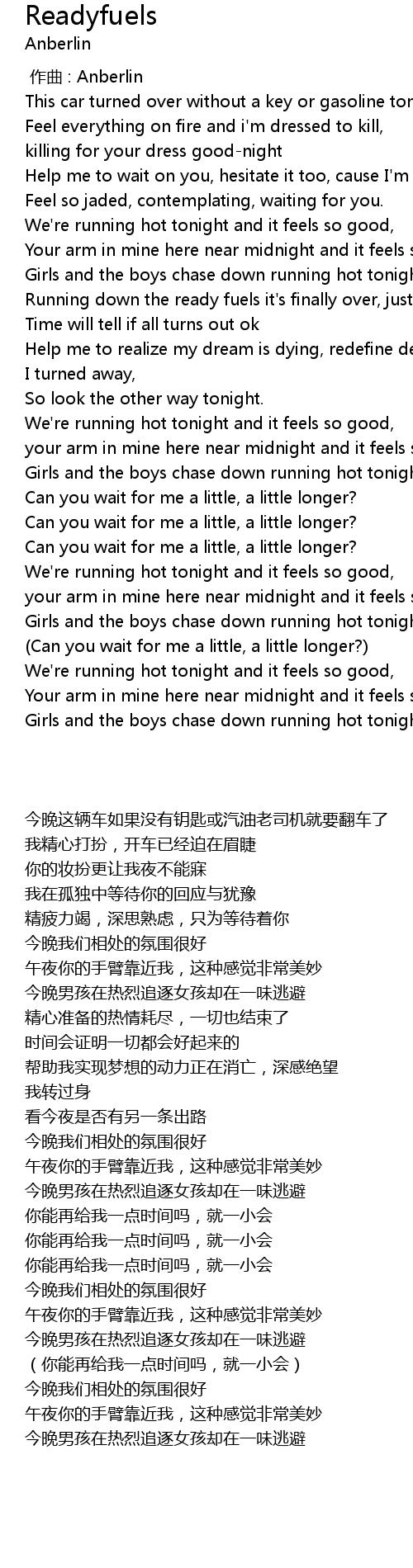 | [03:12.98] | We're running hot tonight and it feels so good, |