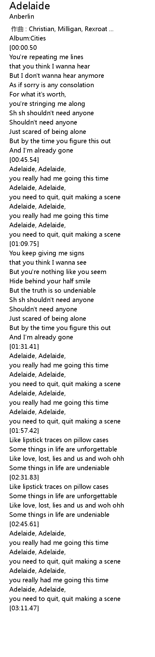 | [01:45.84] | Adelaide, Adelaide, |