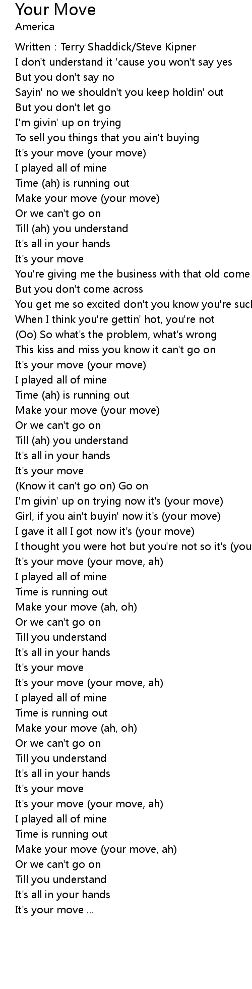 | I thought you were hot but you' re not so it' s your move, your move, your move | |
