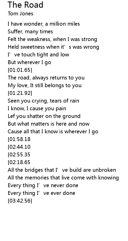 | [01:02.51] | The road, always returns to you |