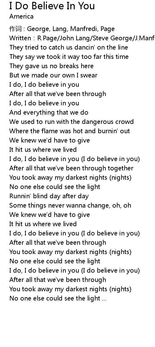 | I do, I do believe in you (I do believe in you) | |