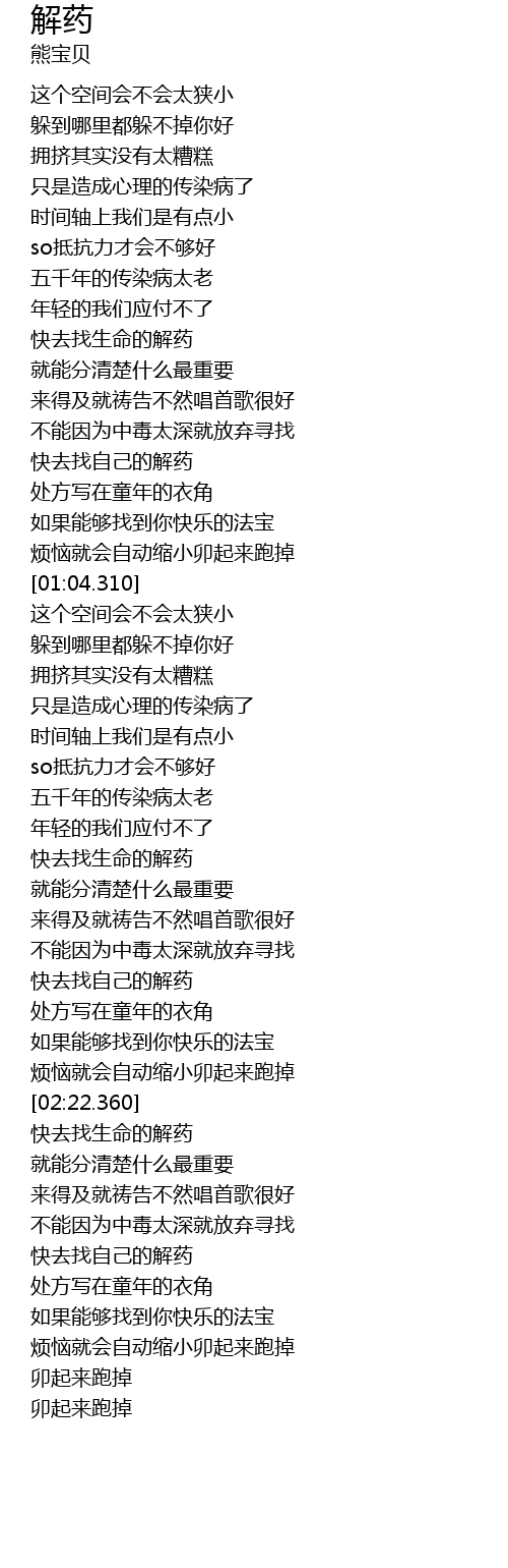 | [02:05.910] | 快去找自己的解药 |