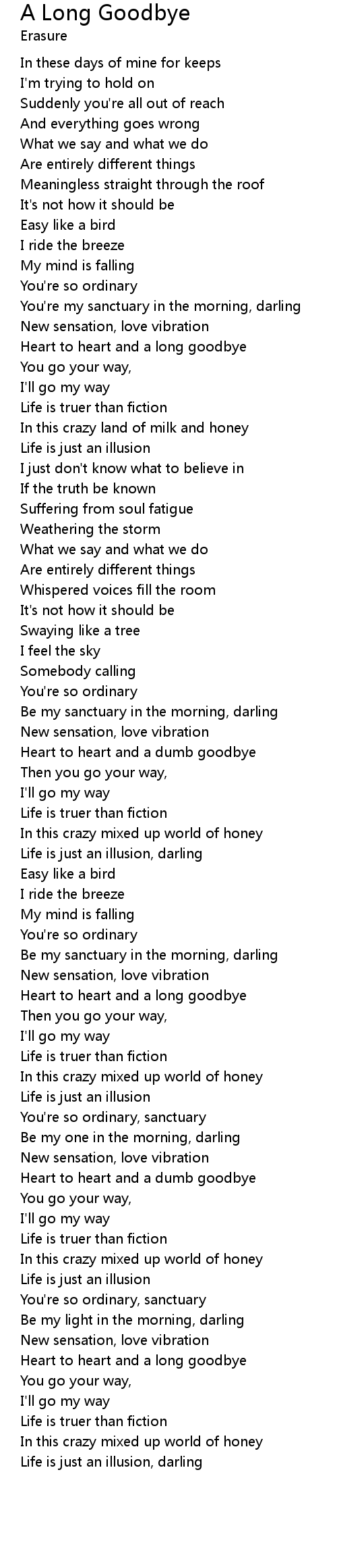 | Heart to heart and a dumb goodbye | |