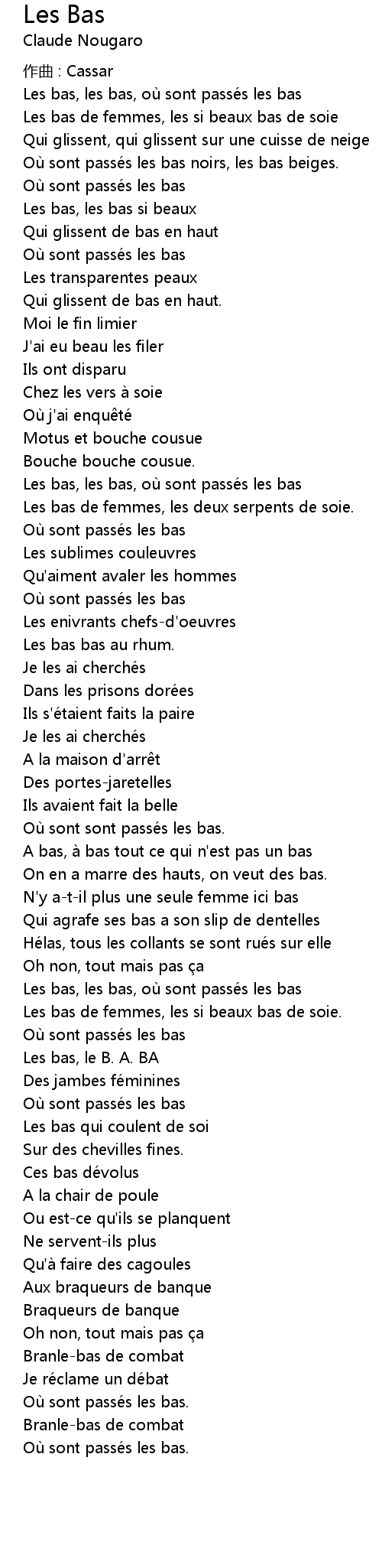 | Ou sont passe s les bas noirs, les bas beiges. | |