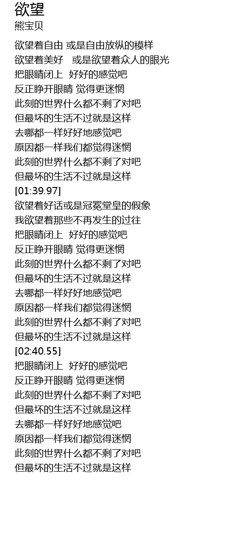 | [00:49.53] | 欲望着自由 或是自由放纵的模样 |