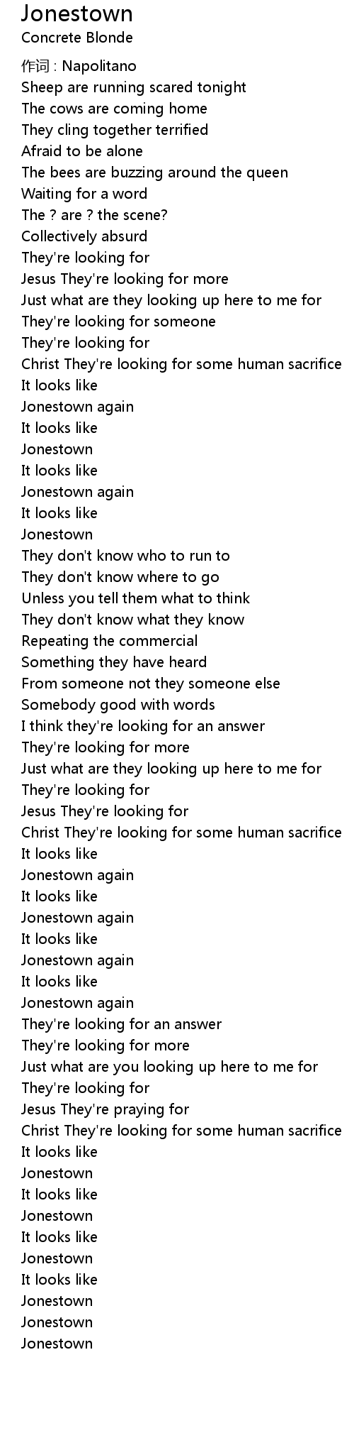 | 歌曲 | Jonestown |