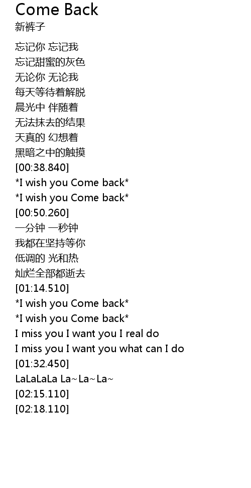 | [00:39.840] | I wish you Come back |