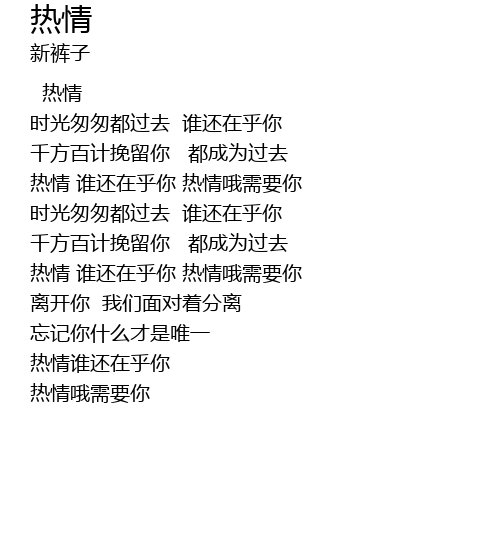 | [00:28.80] | 热情 谁还在乎你 热情哦需要你 |
