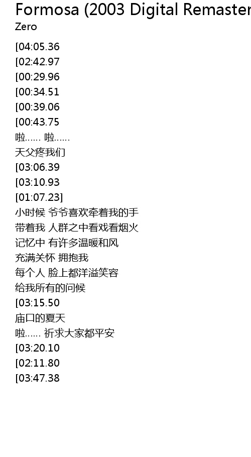 | 歌曲 | Formosa (2003 Digital Remaster) |