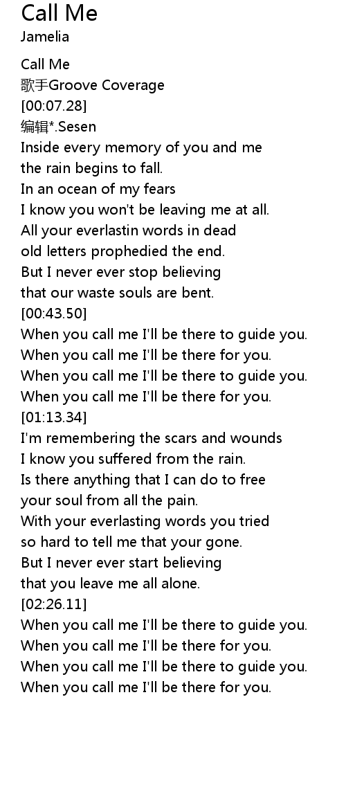 | [00:01.12] | Call Me |