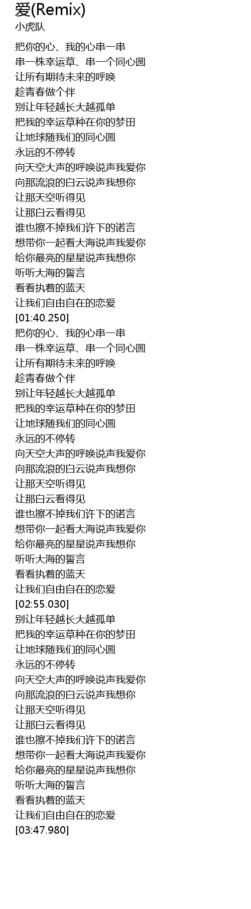 | [03:04.710] | 把我的幸运草种在你的梦田 |