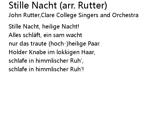 | 歌曲 | Stille Nacht (arr. Rutter) |