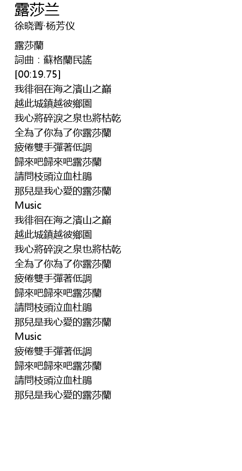 | [02:21.14] | 歸來吧歸來吧露莎蘭 |