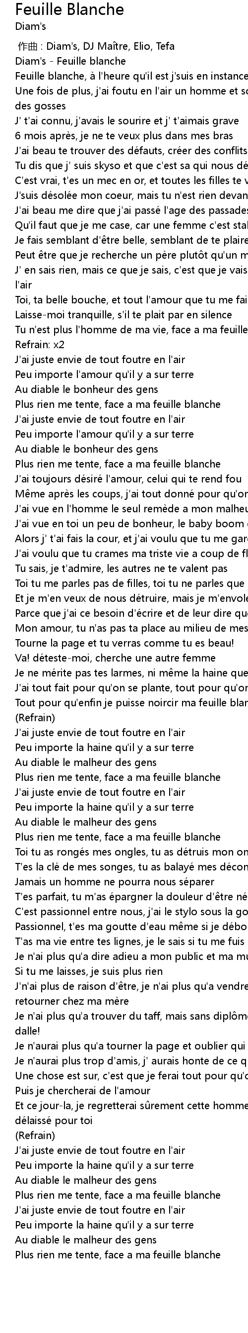 | [00:00.00] | Diam's - Feuille blanche |