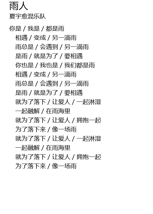 | 歌曲 | 雨人 |