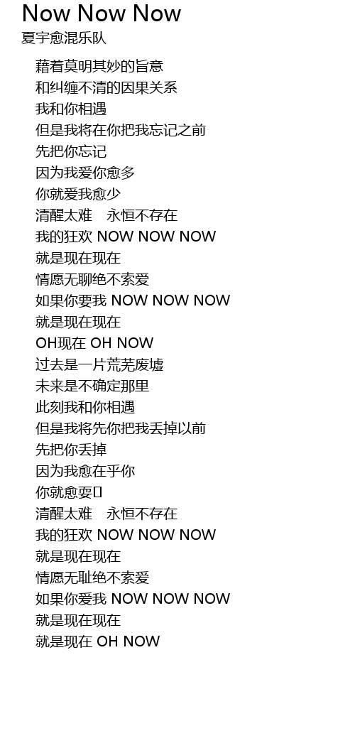 | [01:15.79] | 如果你要我 NOW NOW NOW |