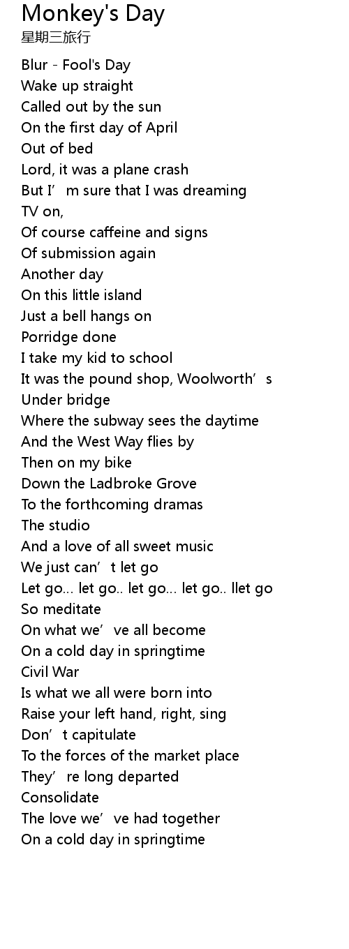 | 歌曲 | Monkey's Day |