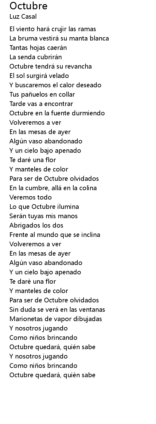 | Octubre quedará, quié n sabe | |