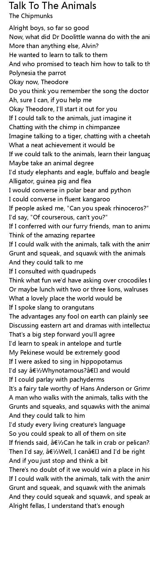 | And who promised to teach him how to talk to the animals, Simon? | |