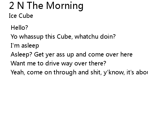 | [Cube] Yeah, come on through and shit, y'know, it's about 2 |