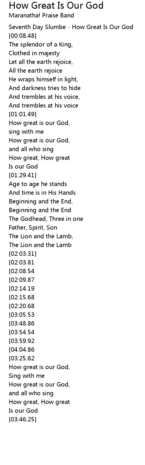 [00:01.12] Seventh Day Slumbe - How Great Is Our God