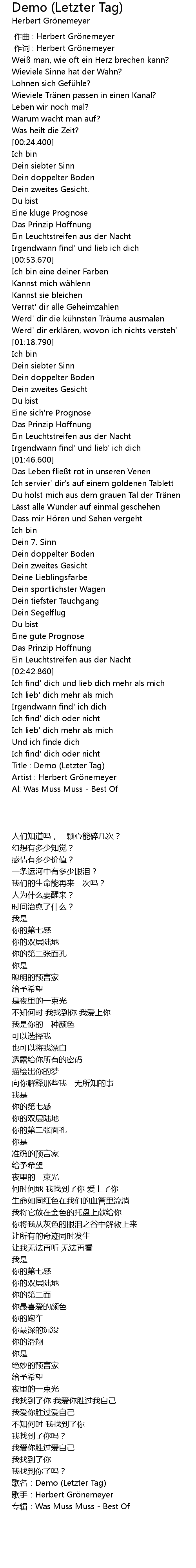 | [03:06.910] | 歌名:Demo (Letzter Tag) |