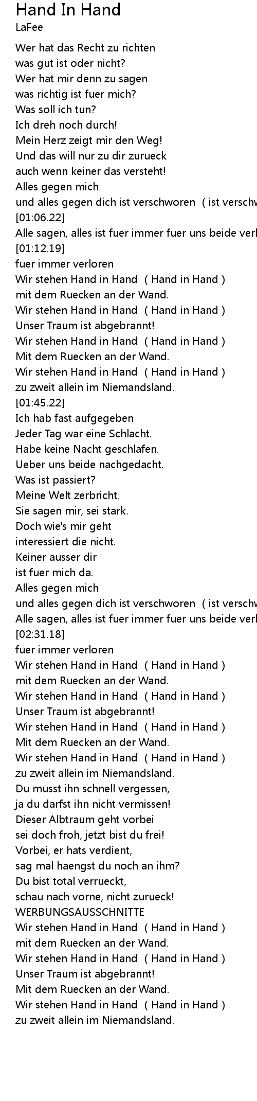 | [04:06.46] | Wir stehen Hand in Hand (Hand in Hand) |