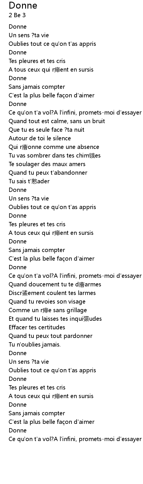 | Ce qu'on t'a vol?A l'infini, promets-moi d'essayer | |