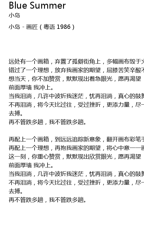 | 不再泪淌,将今天比过往,受过挫折,更添力量,尽一生敢去闯 去搏。 | |