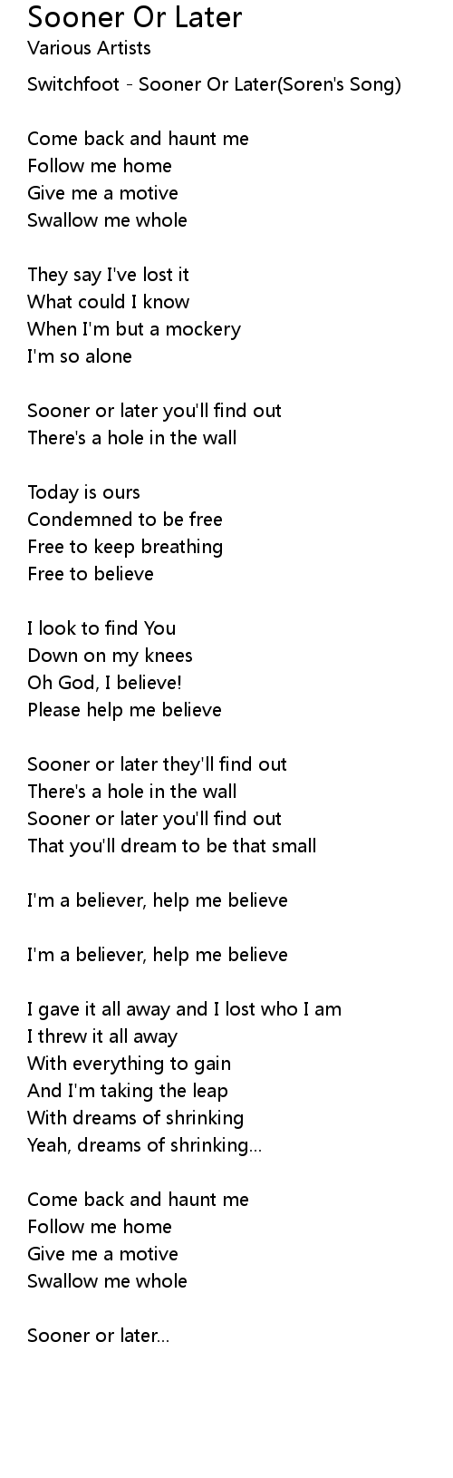 Switchfoot - Sooner Or Later(Soren's Song) |