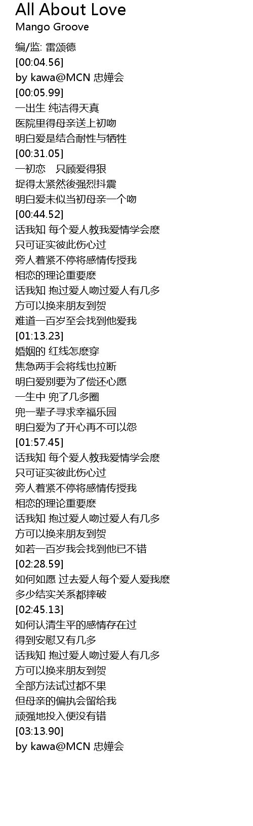 | [00:44.68] | 话我知 每个爱人教我爱情学会麽 |