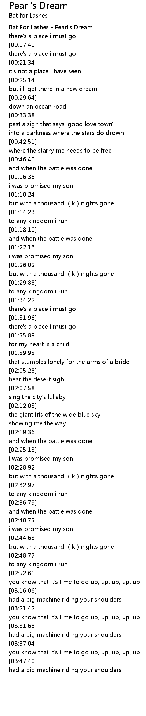| [00:01.99] | Bat For Lashes - Pearl's Dream |