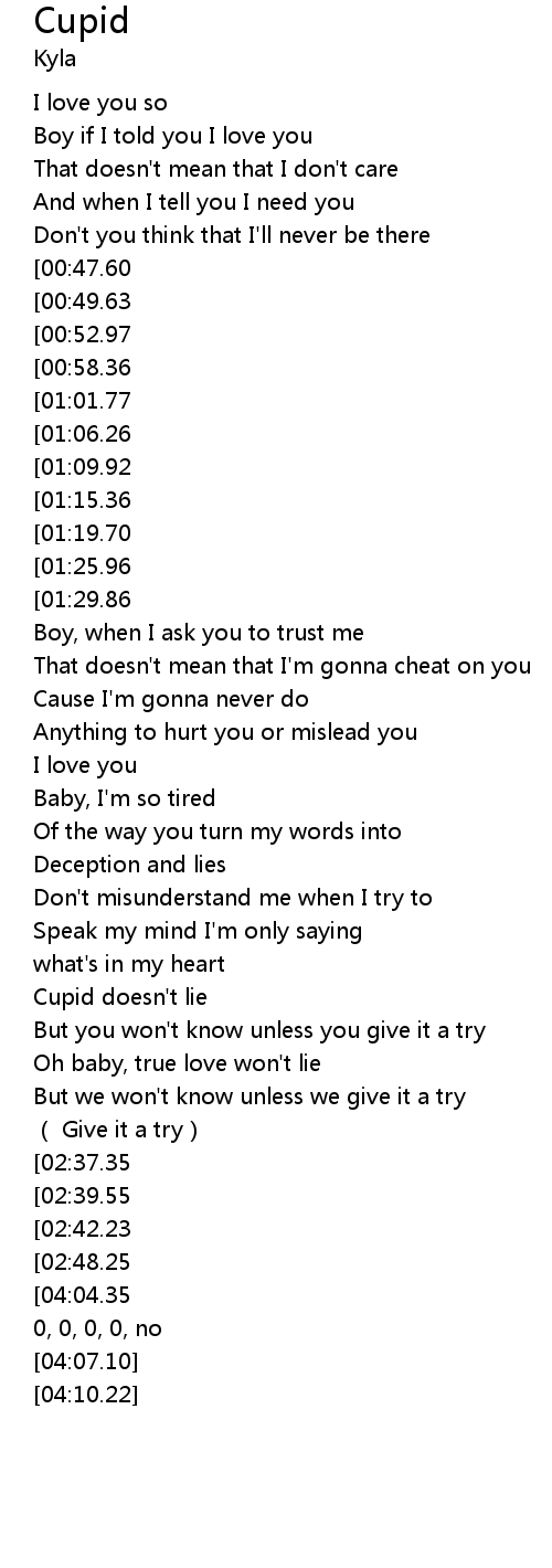 | [03:26.29][01:09.92] | Cupid doesn' t lie |