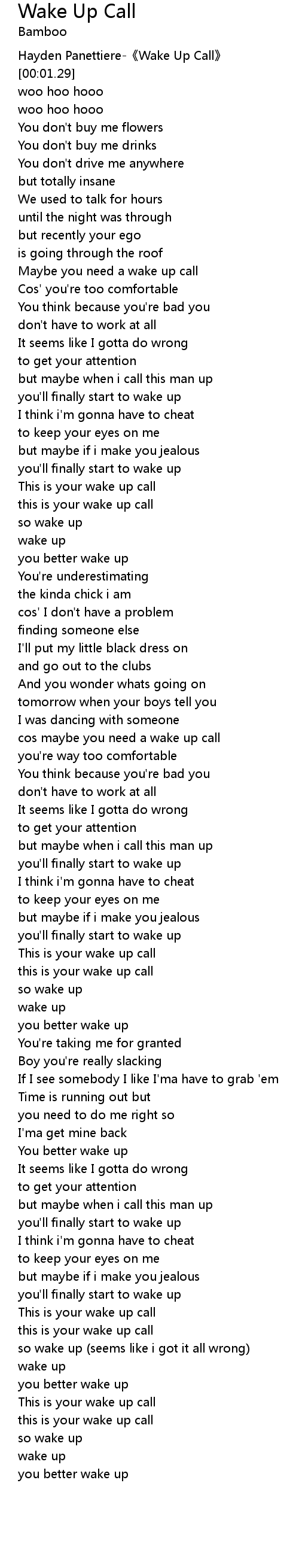 | [00:00.19] | Hayden Panettiere Wake Up Call |