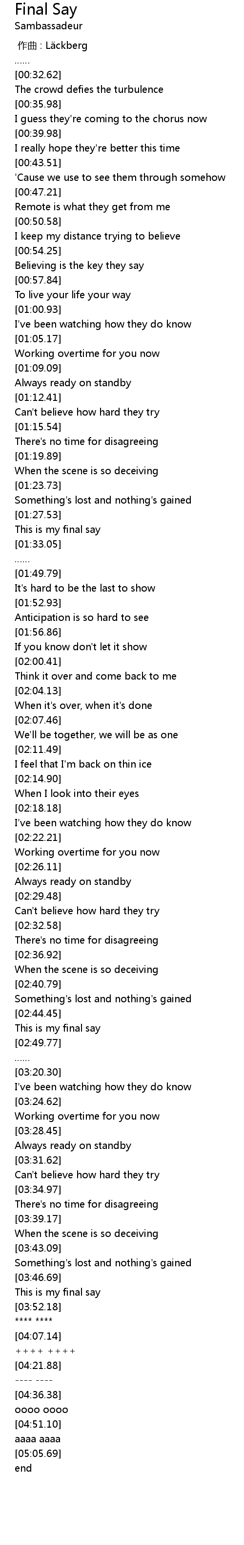 | [03:46.86] | This is my final say |