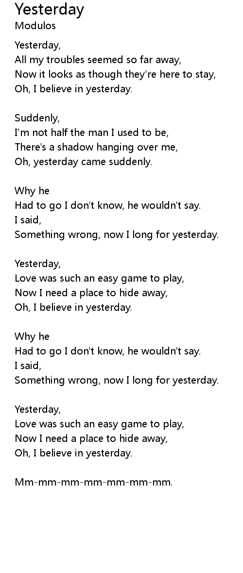| Yesterday, | |