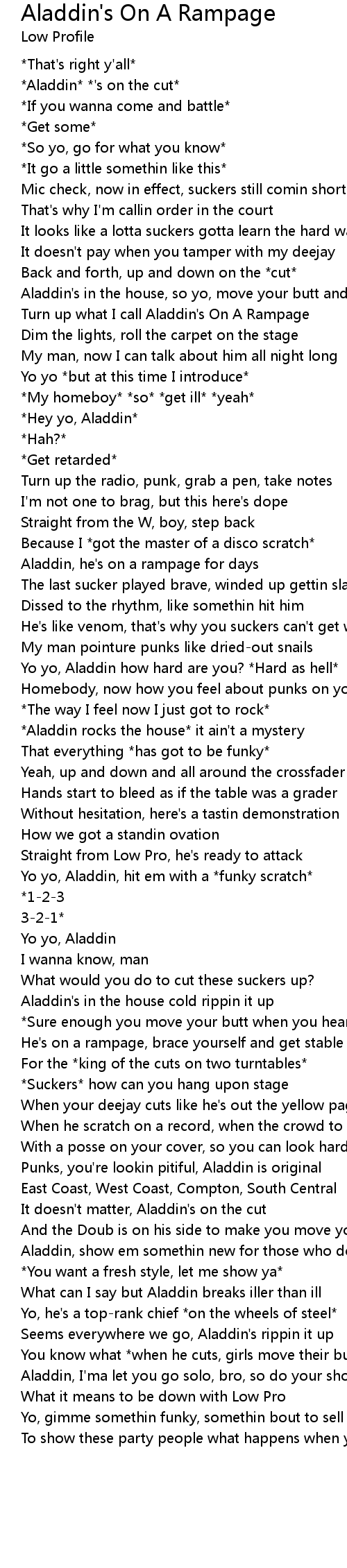 *Hey yo, Aladdin* |