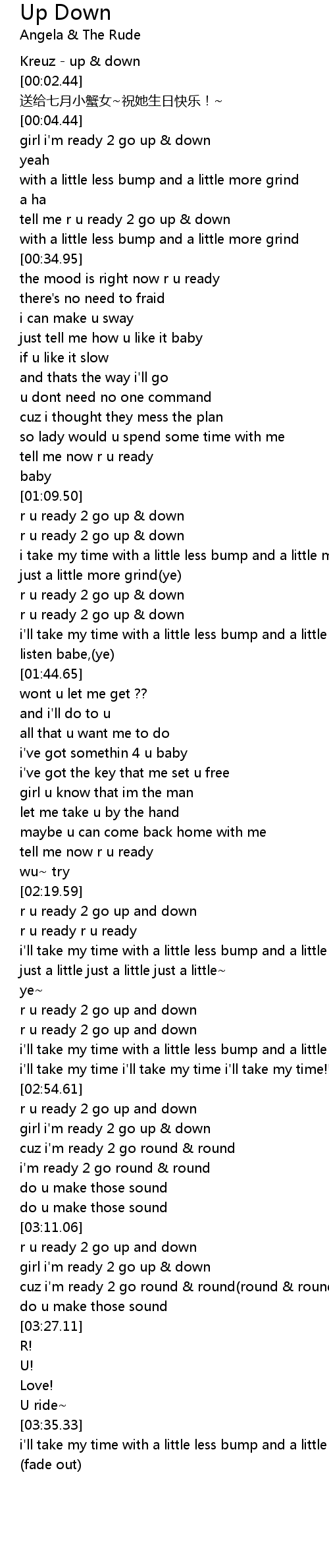 | [02:59.98] | girl i'm ready 2 go up & down |