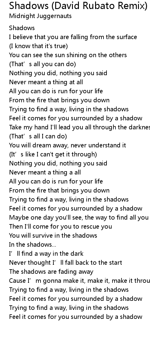 | [01:52.44] | Trying to find a way, living in the shadows |