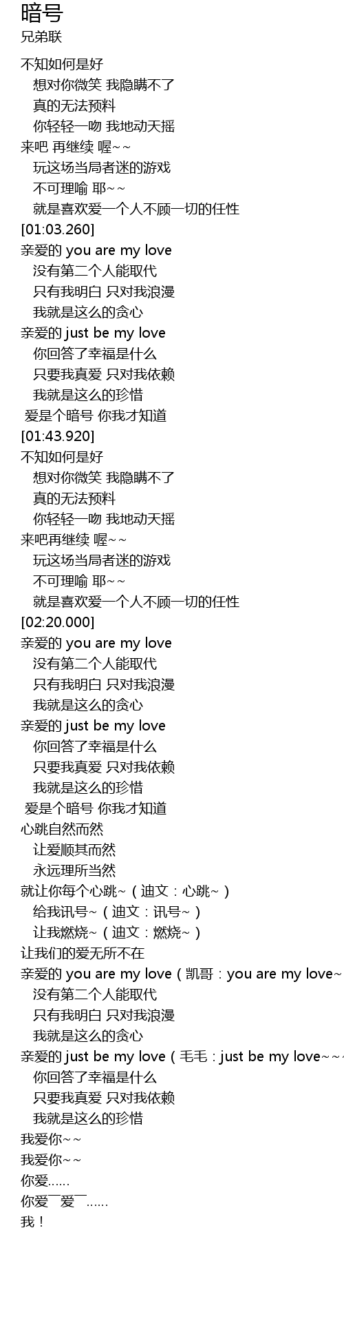 | [02:55.370] | 爱是个暗号 你我才知道 |