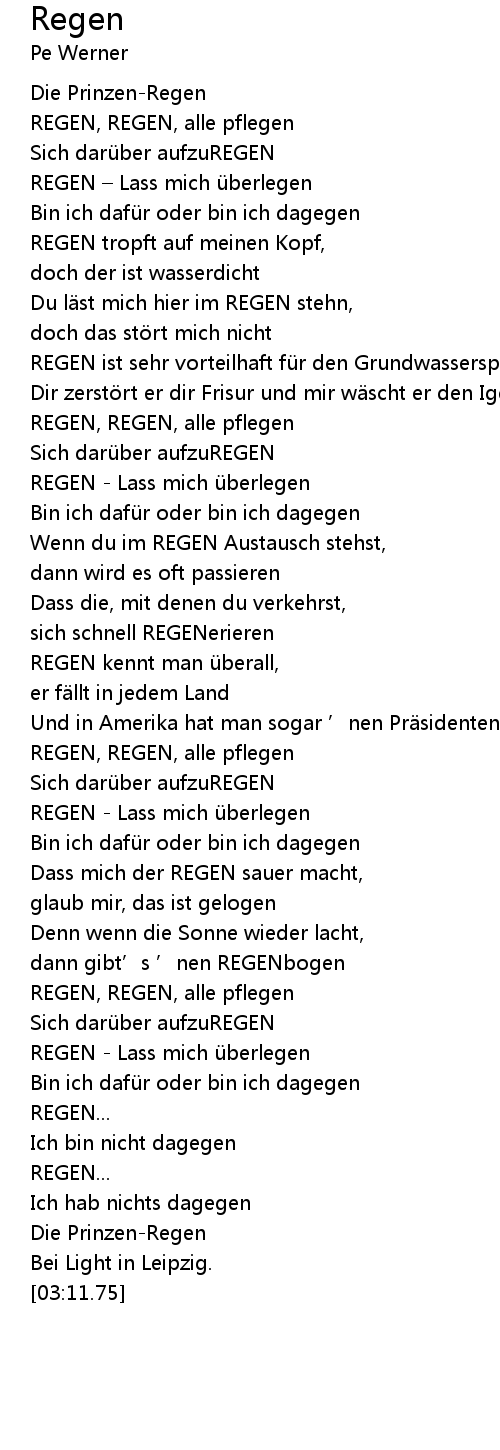 | [00:55.91] | REGEN, REGEN, alle pflegen |
